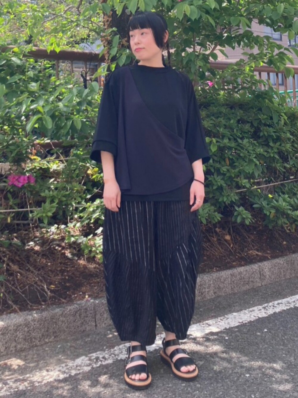 【VERT】の夏の新作を着ました。 マニッシュな雰囲気のデザインカットソーと、フラボアらしいボリュームパンツ。 風通しの良いゆったりとしたデザインと素材でジメジメするこれからの季節も過ごしやすいコーデになりました。 ふんわりとしたコーデなので、すっきりした足元やヘアスタイルでスタイリングするのがオススメです。