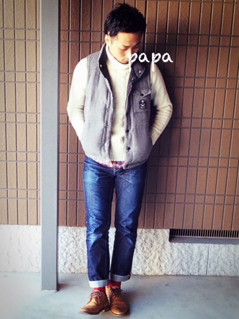 tama-papaのダウンベスト「別注 REVERSIBLE DOWN ベスト」を使ったコーディネート