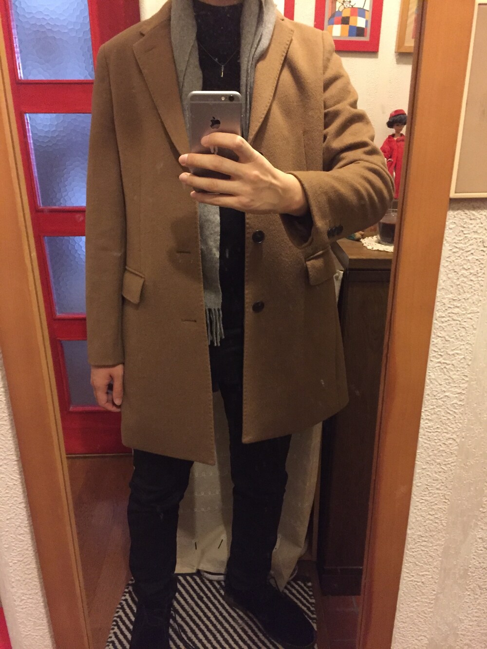 ユニクロのチェスターコートを使ったコーディネート。 黒で統一しても面積の大きいキャメルで明るくなるのでカジュアルに抜けるアクセントを使わなくても着こなしやすいですね。 モックネックやタートルネックにネックレスを加えるとチェスターのVゾーンから間延びした感じがなくなって良い感じ。