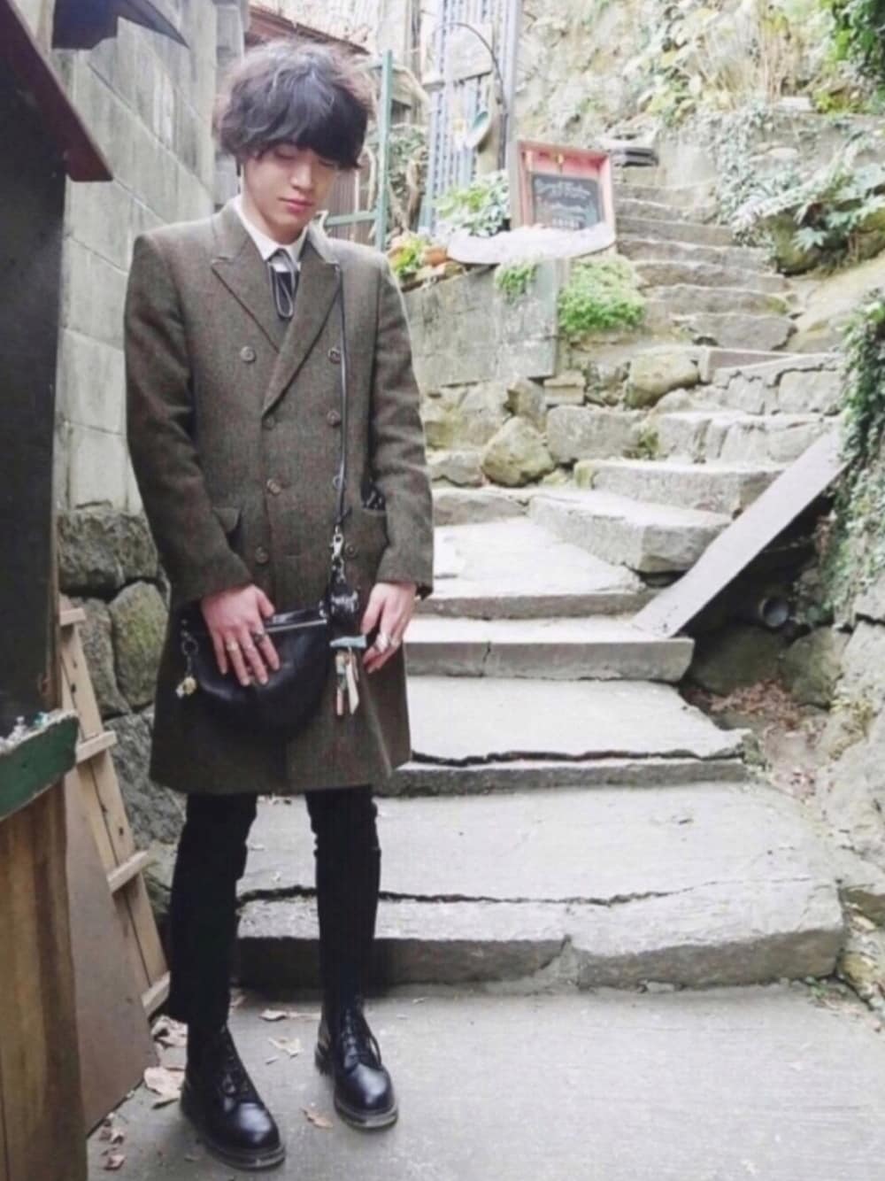 猫の細道にて。 お正月明けに尾道へ出かけてきました。 何度か来訪したことはあるのですが、尾道は商店街にも少し変わったお店があったり、海に面した坂に並ぶ街並みがとても綺麗なところです。 中でもこの猫の細道には、その名の通り猫がたくさんいて、道沿いにはカフェや雑貨屋さんが点々と並んでいる、私にはたまらない場所なのです。 この日は年明け、また海沿いの街ということもあり、少し肌寒い日でしたので、お気に入りのコートを中心としたコーディネートです。各アイテムをご紹介します。 まずLAD MUSICIANのダブルチェスターコート。 このコートは、僕が大好きなダブルブレストなうえ、これまた僕が大好きなツイード生地なので、お気に入りのアイテムとなっています。クラシカルな雰囲気を出しつつ、細身でモード感もあります。個人的にはこのアイテムについては、ボタンを留めた方がシルエットが綺麗なので、オススメです。 続いてトップスはSHAREEFのリボンシャツと、殆ど見えていませんがSHAREEFのストライプリネンプルオーバーです。 クラシカルでかわいい雰囲気のリボンシャツの上に、黒のプルオーバーシャツをレイヤードで着用しております。この組み合わせは、ロングコート等を着用していると、ボトムスにインしなければどうしても少し間延びしてしまうフォーマル感のあるシャツをカジュアルに見せてくれる、最近ハマっている組み合わせです。 特にこのSHAREEFのストライプリネンプルオーバーについては、あらゆるシャツと組み合わせられる本当に優秀な、お気に入りのシャツです。特にプルオーバーなのに、シャツ生地かつ袖はスエード調の切り替えとなっているのがオシャレですね。 ボトムスはLAD MUSICIANのスリムスラックス。こちらは定番かつ汎用性の高いスラックスです。かなり細身なのでショートブーツもしくはシューズと合わせると◎です。個人的好みから裾をダブルに仕立て済み。ダブル仕立てはシングルに比べて足元が華やかに見えるので好きです。 ブーツは最近購入したDr.Martensの6 EYE BOOTS。僕の持っている靴は殆どDr.Martensで、何足か所持しているのですが、今まで6ホールは持っておらず、細身のスラックスと合わせたくて購入しました。これが本当になかなか合います。8ホールでは、このLAD MUSICIANのスラックスの丈は3ホールの短めの丈感がちょうど良かったのですが、少し足元を華やかにしたくて8ホールを履いたらブーツが長過ぎて裾に引っかかってしまいがちでした。 そこでこの6ホール。長過ぎず短過ぎず、上手く足元に調和をもたらしてくれます。またオールブラックなので全体的なモード感も少しありますね。 他の小物はいつも通りRUDE GALLERYのエプロンバッグでコンパクトに抑え、Vivienne Westwoodの指輪で手元をかなり派手にしています。 ただ今回は肌寒い日だったということで、手袋も着用していました。昔からかなりフィットする革手袋が欲しくて購入したのが、ポケットに入っているMEROLAの手袋。親指は少し長めですが全体的にフィットし、革も上質で、ライナーはカシミヤなので暖かく滑らかです。僕もそうなのですが、親指が少し長めの方にはオススメします。 全体的にフォーマルさとクラシカルさを併せ持った印象のコーディネートで、個人的にはかなり好きな組み合わせでした。 のちのちこのアイテムは本当に良いアイテムだって思えるものが手に入るとそればっかり着ちゃいますね。 そういったアイテムを今後も見つけていきたいなと思います。 尾道もとても良かったので大満足でした。 文章が長くて長くて、短くしたい今日この頃。 LILY/ART-SCHOOL グッバイ・ラバーズ 永遠に触れもしなかった グッバイ・ラバーズ いつまでも不思議だと思った グッバイ・ラバーズ 指さえも触れもしなかった グッバイ・ラバーズ 生まれてこない方が良かった なんて言って 僕には花があったのにね いつか散って