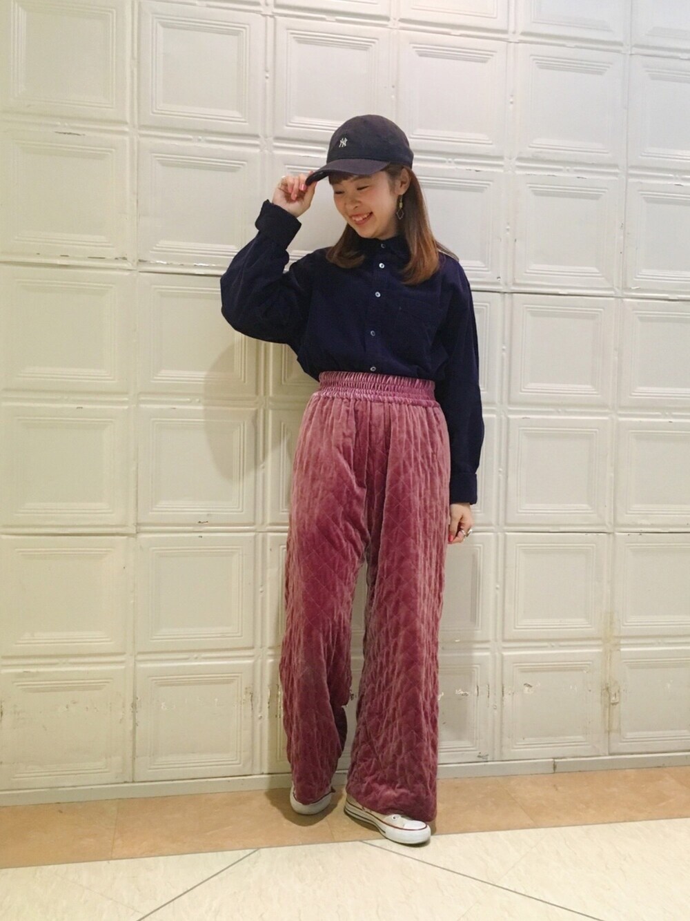 RBSのベロアパンツにメンズのコーデュロイのシャツを合わせてダボっとメンズライクに着てみま した🤔👖 足が短いのでベロアパンツは5センチ丈詰めしました✂︎