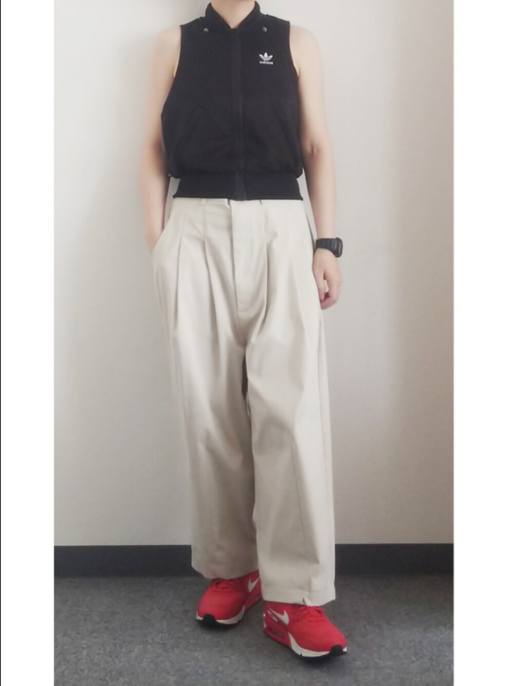 春先から気になっていた分離型のジャージ、セールで購入。 最初だし夏だしせっかくだからノースリーブ単体で着てみたけど… やはりかなりの気合いが必要(苦笑)。 肩とか腕とかもっと骨ばってたらいいんですが…