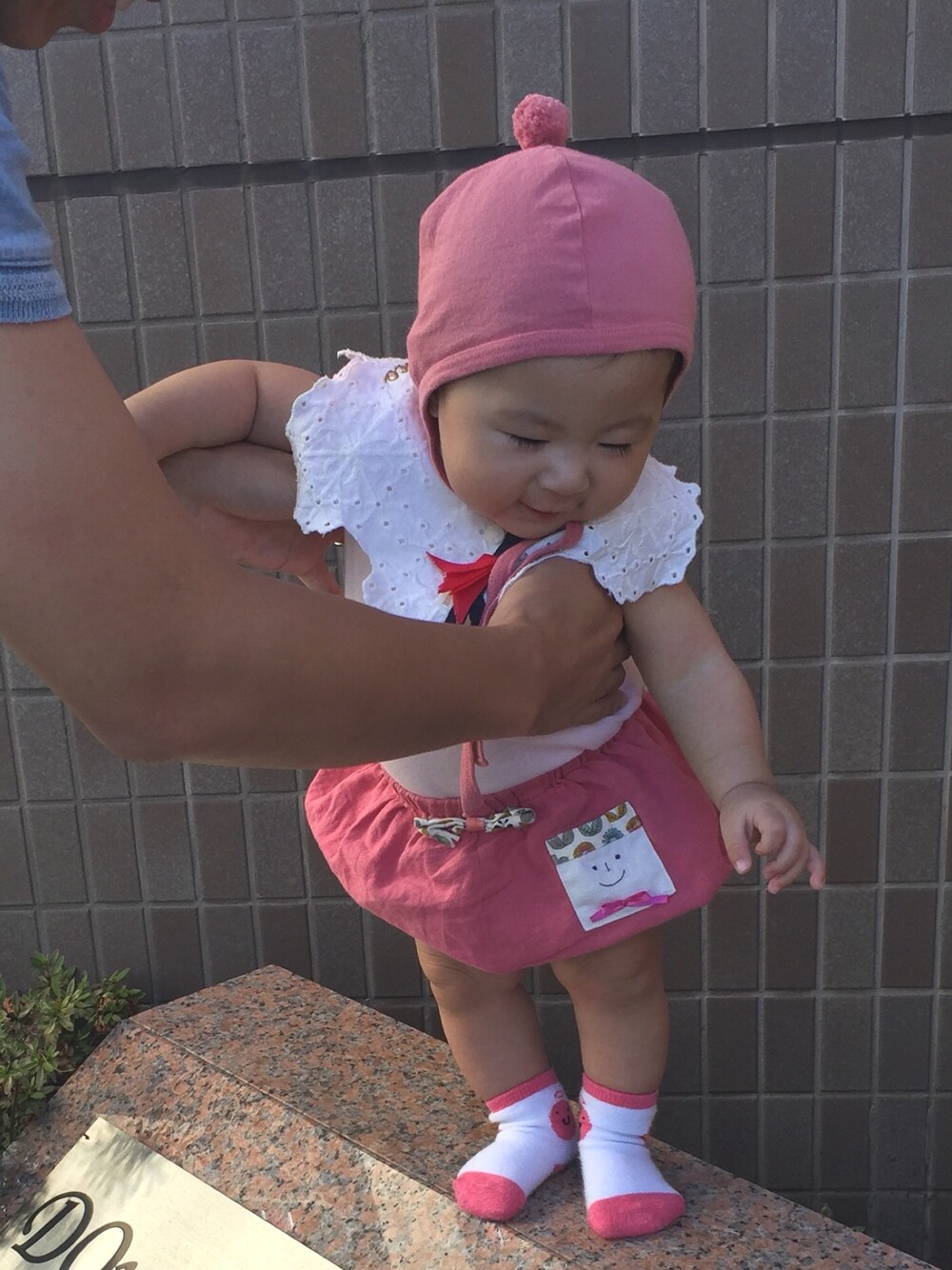 なんか、上手にできなくて、再度投稿。笑 ピンクのミニパー子コーデ♡ こどもビームスのこの帽子がお気に入り GAPのこのロンパースは活用抜群の万能アイテム〜