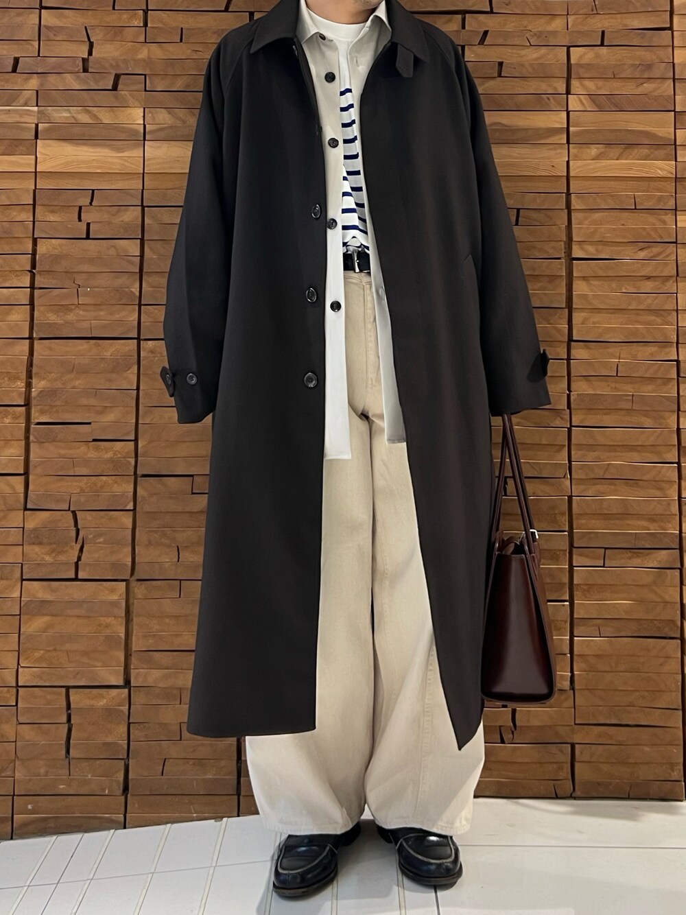 taku(SENSE OF PLACE 心斎橋)のステンカラーコート「バルマカーンルーズコート」を使ったコーディネート