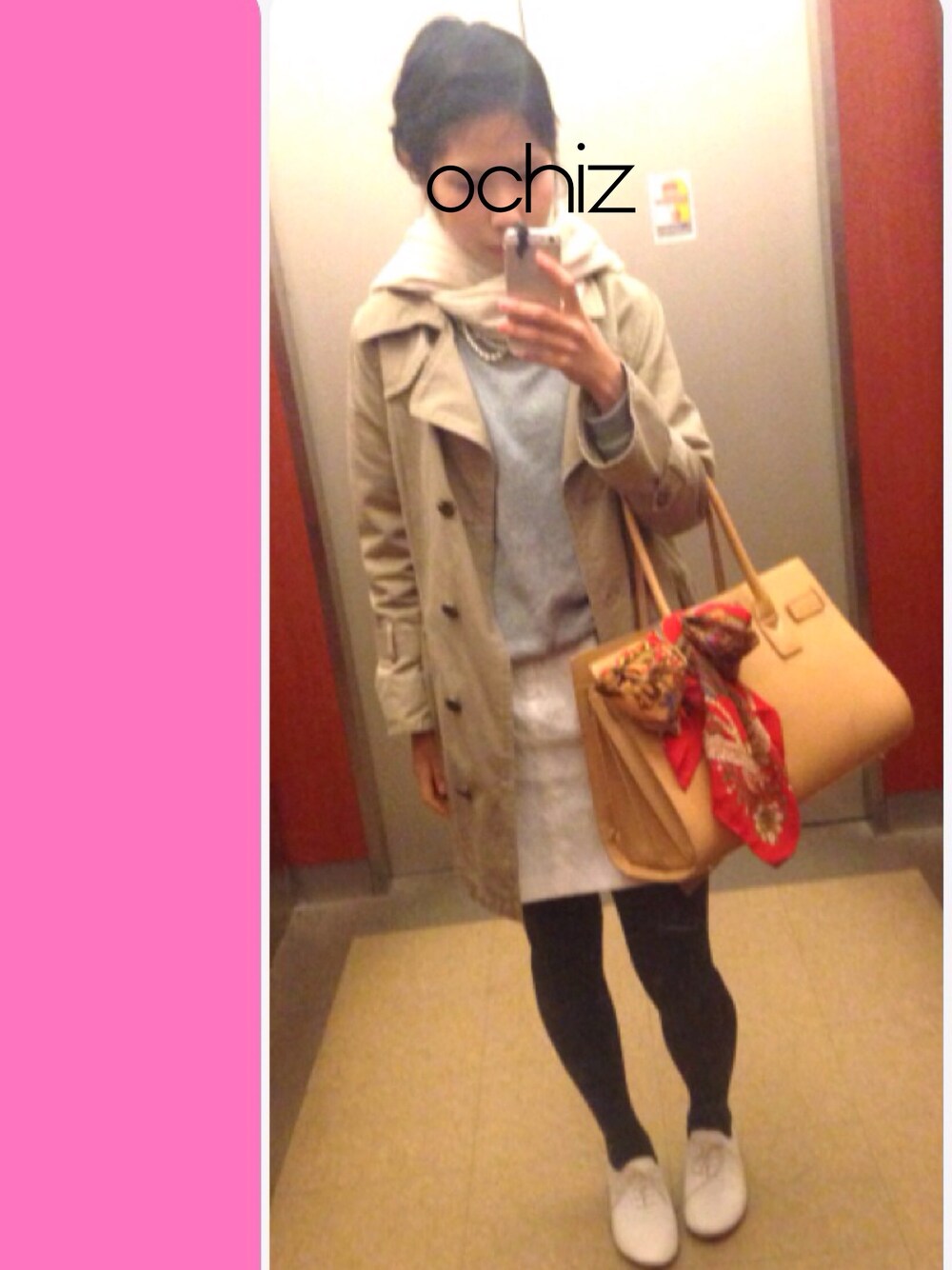 Trench coat ♫ スウェット × ジャガードスカート feat.パールネックレス (笑)