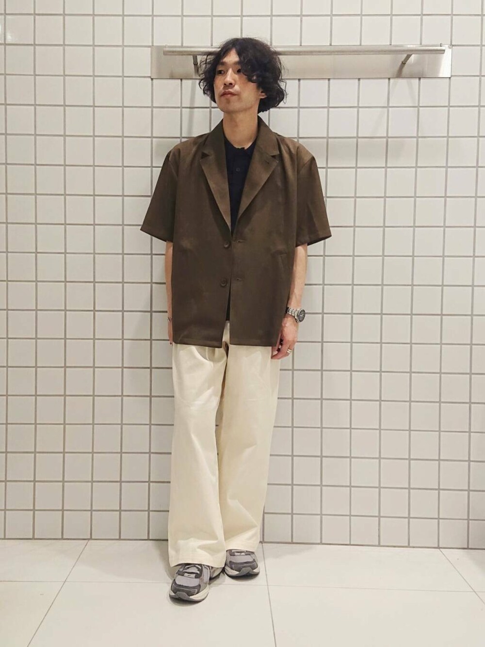 5分袖ジャケット×ニットポロシャツ ジャケットは見え方のパターンが偏りがちな夏も、薄手かつショートスリーブで新鮮にカッコよく見せていただけます○