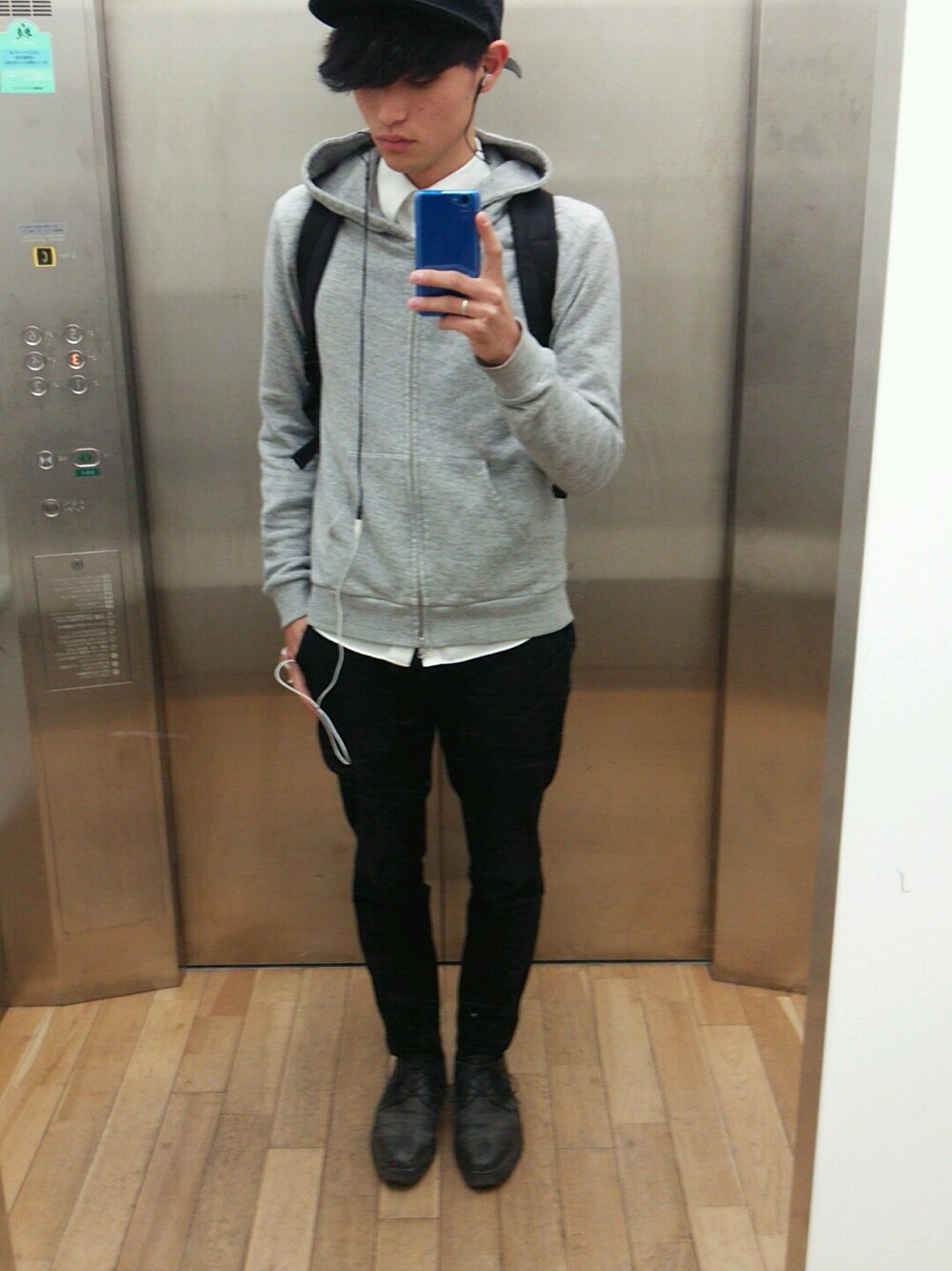 グレーパーカー白シャツ黒パンツ。普遍的な感じですね(笑)。普遍的だからこそ本当はもっと拘りたい。けど、たまには安価な服も着ないと、疲れますよね(笑)。 上から 603 HARE used LADMUSICIAN PADRONE