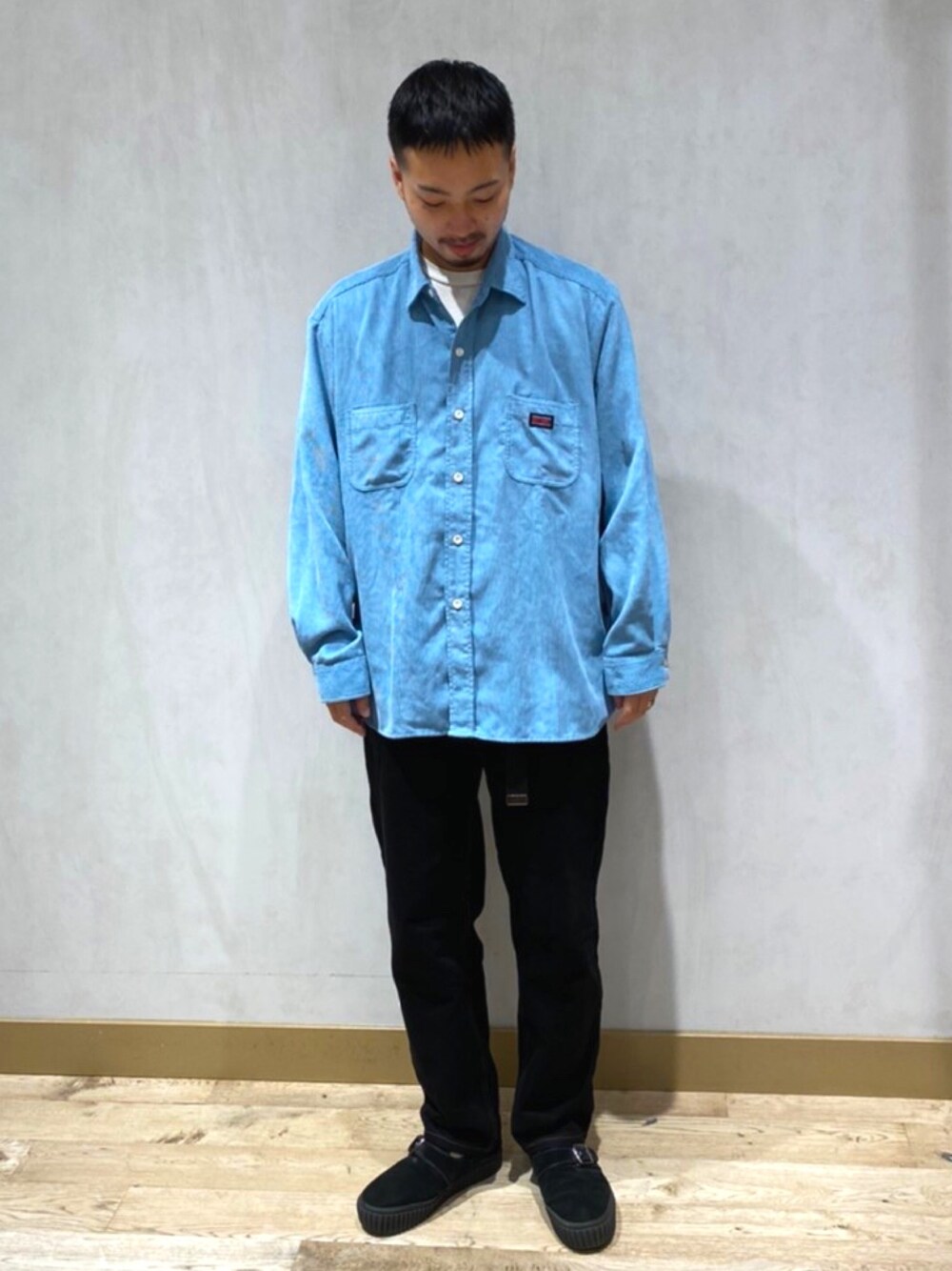 ブルーのシャツが目を惹きますね◎
