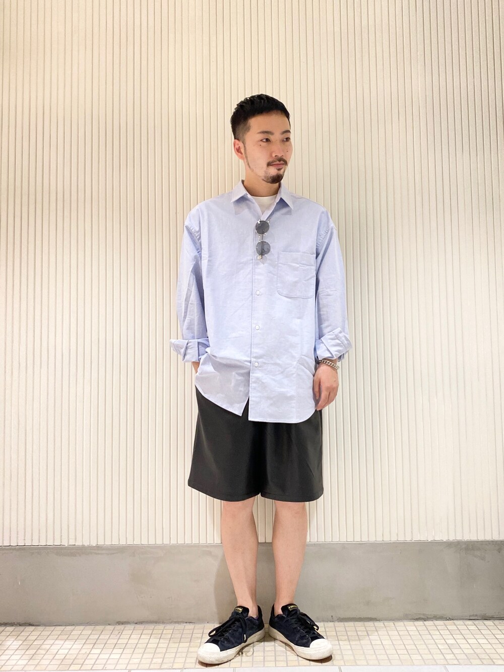 フェイクレザーのショートパンツは上品さもあり雰囲気良し!履き心地も良し! Tシャツ合わせはもちろん、ビッグシルエットのシャツとの相性も◎ 【フェイクレザーショーツ】 サイズ感:Mサイズ着用。ちょうど良いです。ウエストはゴムで楽ちん。足回りはゆったりシルエットです。 着心地:柔らかい生地で快適な履き心地です。 【シャツ】 サイズ感:フリーサイズ。ビッグシルエットで、着丈も程良く長めです。 着心地:生地に硬さは無く、ゆったりしているので着心地良いです。前開けで羽織っても形が綺麗です◎
