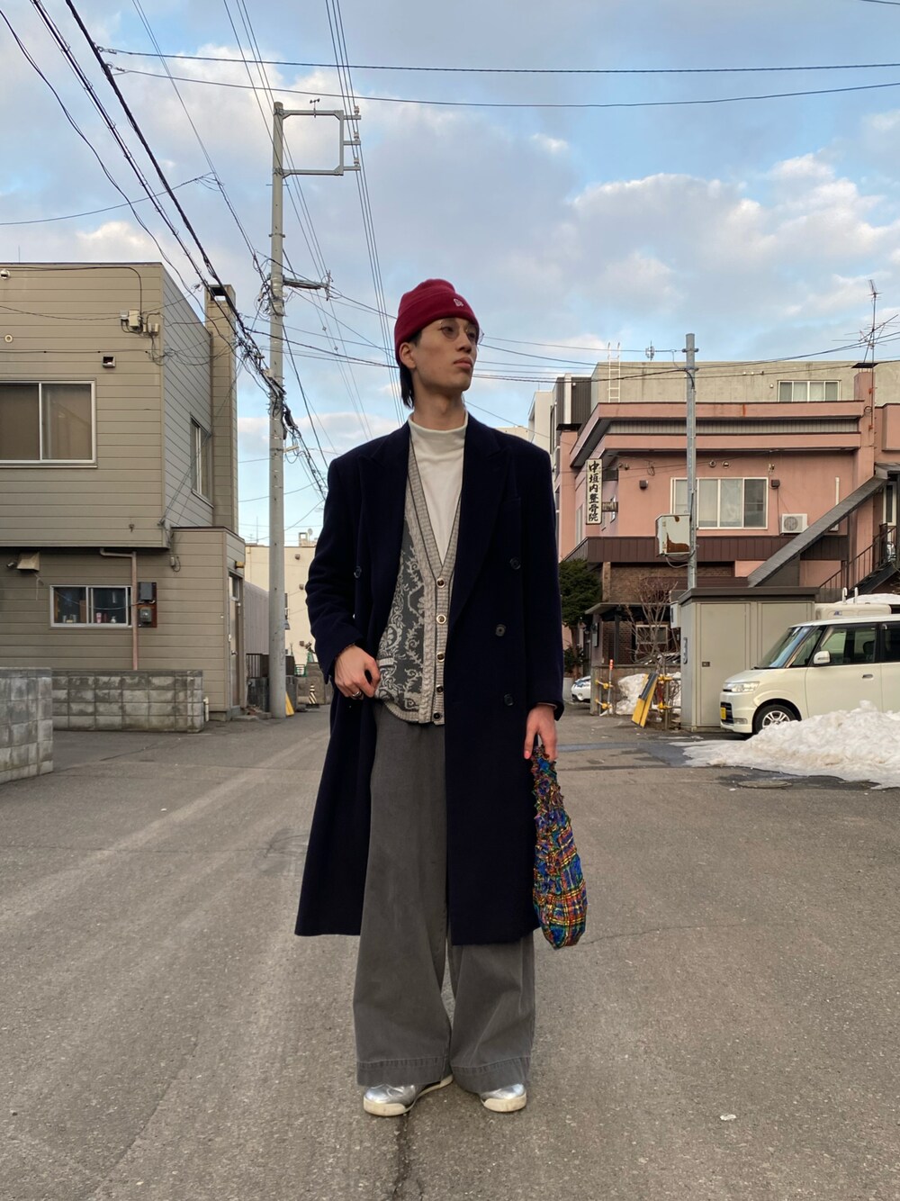 他の投稿は▶︎▷@takuuumma11 北海道に上陸した時のコーデ‼️ ベースは大好きグレーを基調としたモノトーンだけど、要所にネイビーとブルーの同系色を混ぜて頭に相性のいい赤紫のビーニーをチョイス!色めっちゃ使ったけどきれいめカジュアルに上手く落とせたお気に入りコーデ🦢 Instagram▶︎▷@weartaku3