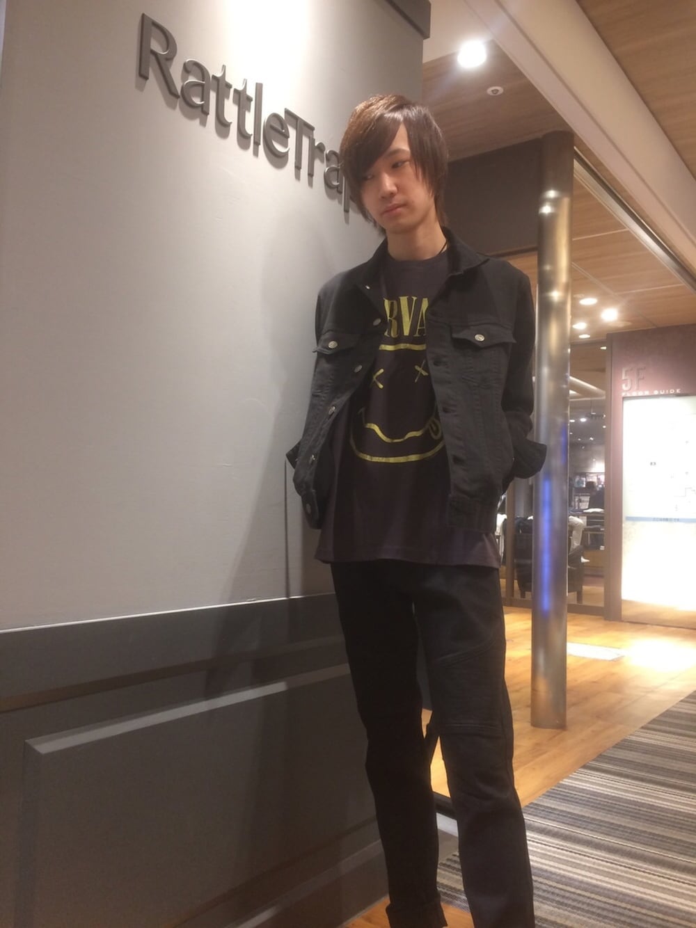 天王寺MIO店ラトルトラップの山下です☆ いいね、セーブ、フォローありがとうございます☆ 今回は黒のワントーンコーデ! さらにデニムオンデニムのかっこいいコーデにしてみました(∩´∀`∩) インナーにはNIRVANAのTシャツを入れて よりかっこいい感じにしていますd('∀'*)