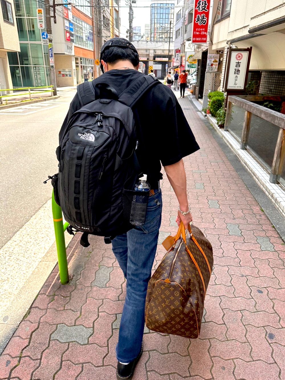 ご覧いただきありがとうございます! 最近暑いですね🥵 黒Tシャツとデニムを合わせてみました! ルイ・ヴィトンのバックは彼女のです笑笑