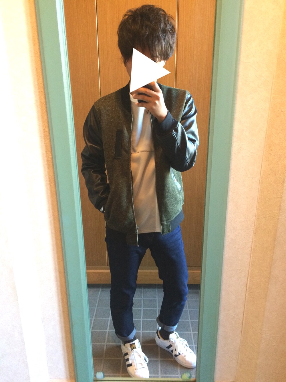 たくやのスウェット「パッチワーク裏起毛スウェットプルオーバー」を使ったコーディネート