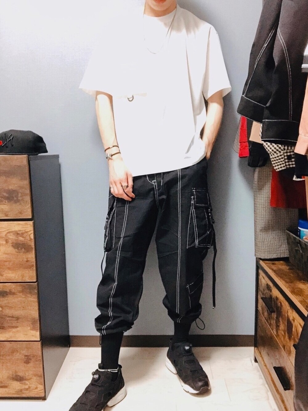 _n.takuya_fのカーゴパンツ「ステッチ配色ワイドカーゴパンツ」を使ったコーディネート