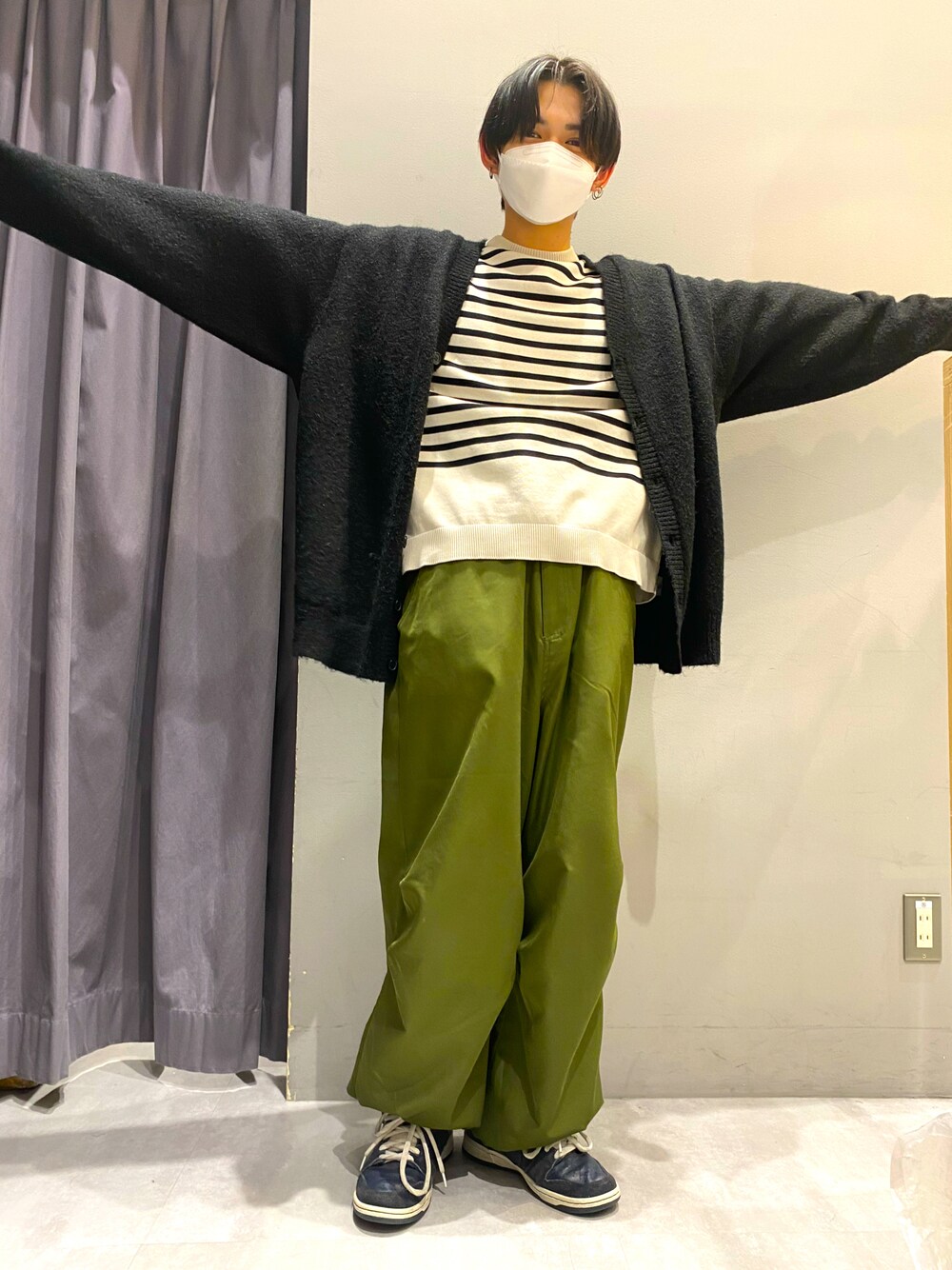 ビックシルエットで統一してコーデ組みました! カーディガンの色次第で全然雰囲気が違ってきます!パンツもLLサイズですが股下と紐で締められるので全然大丈夫です!ボーダーとカーディガンの組み合わせは春にぴったりなのでぜひ試してみてください〜✨