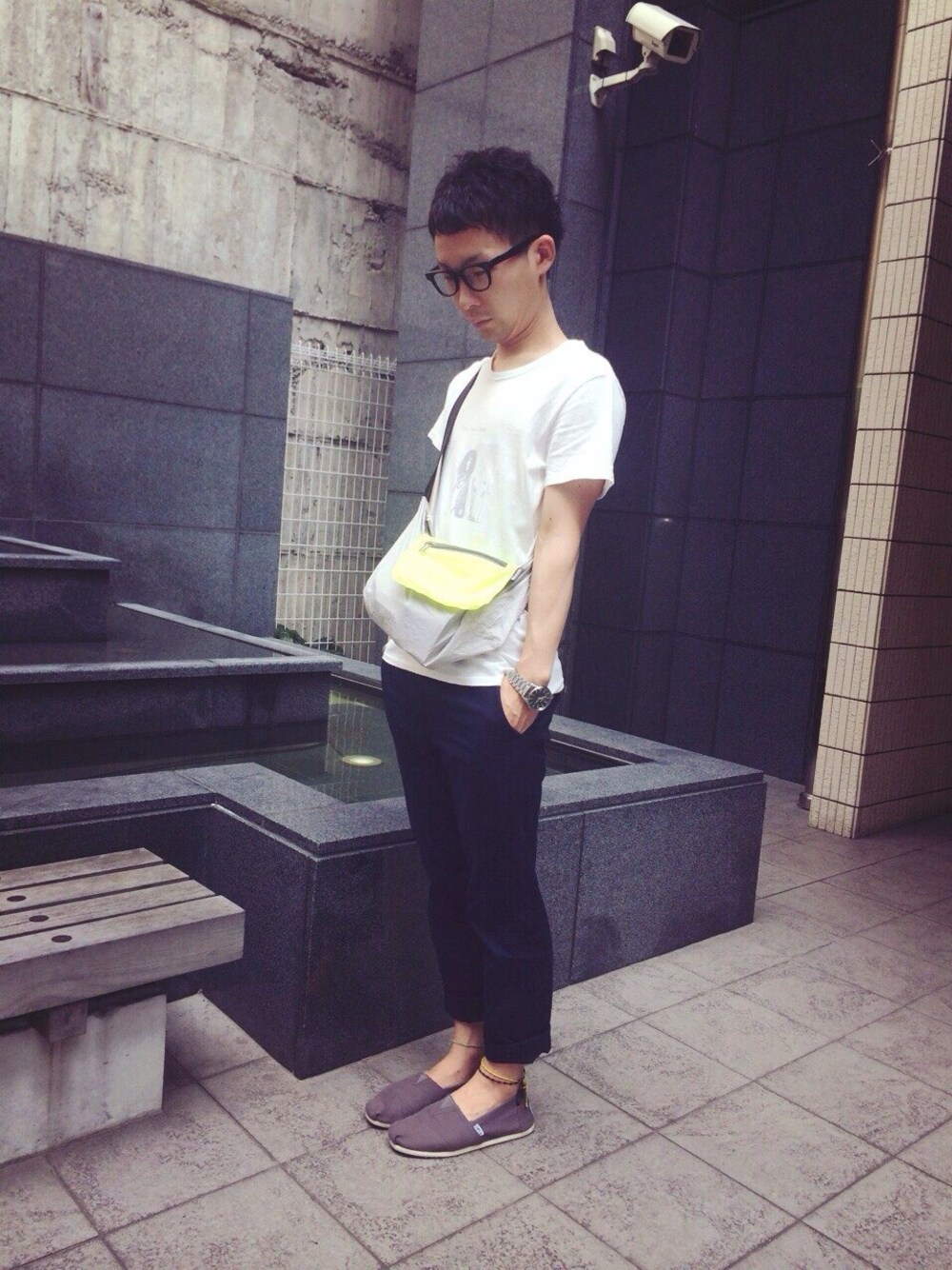 夏らしいファッション(^ ^) 暑いです(ーー;) 出来るだけ薄着でいたいですー。 黒ブチメガネを誕生日にもらいました(^ ^) 気に入っています(^ ^) 藤森風です(^ ^)