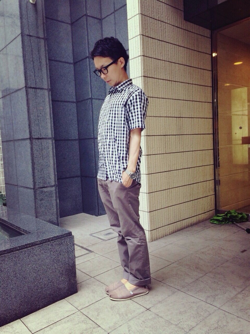 雨が降ってますね。少し過ごしずらい日ですね。 そんなとこコーディネートです^o^ 最近購入したギンガムチェックシャツを使用したコーディネートです。 インテリ系の意識し、髪型を七三にしました。 これから買い物行ってきます^ ^