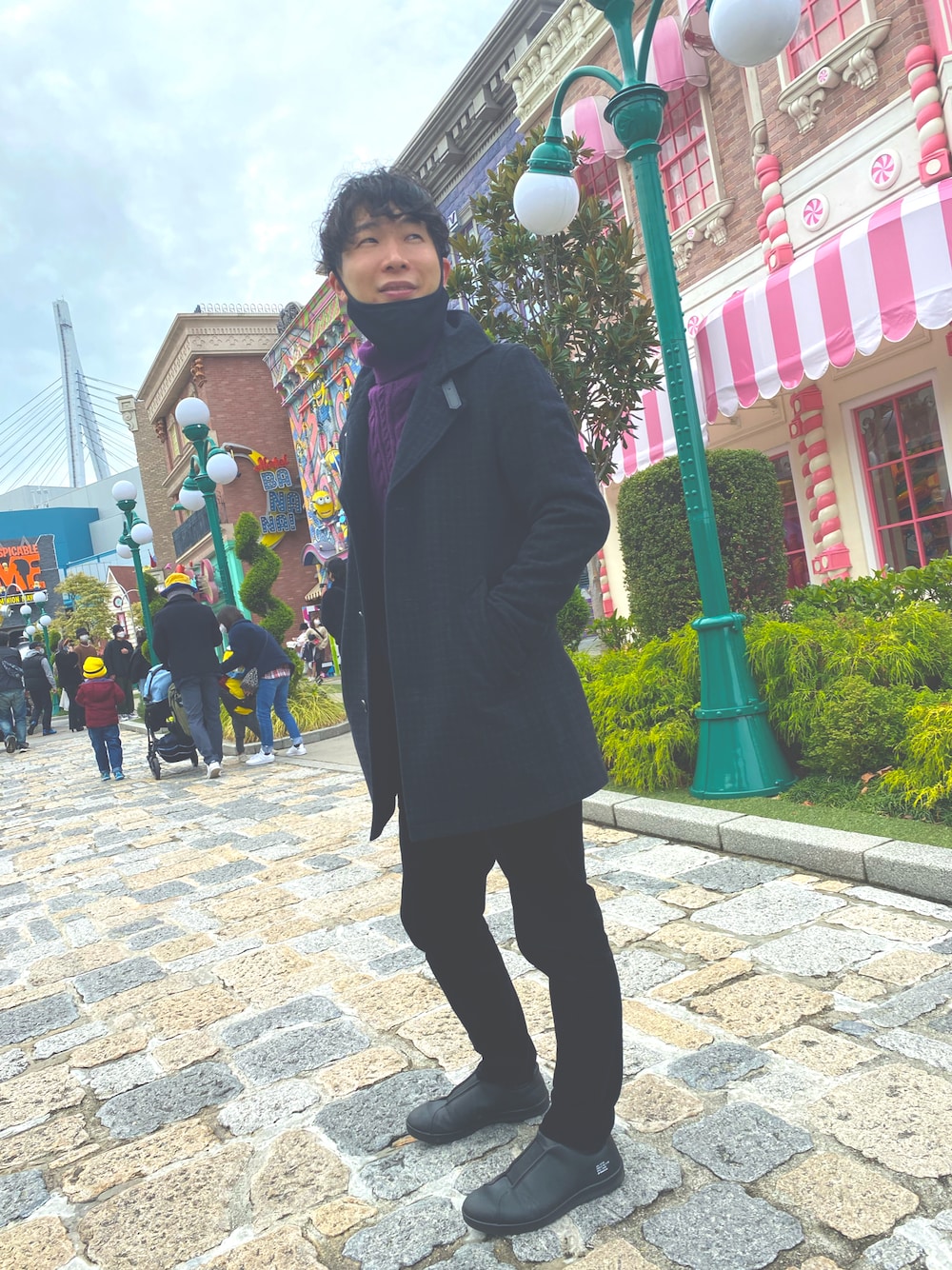 こんにちは お久しぶりです^ - ^ 今日はテーマパークに来ています。 今日のコーディネートのポイントはパープルのタートルネックニットです。 寒くなりましたね、タートルネックが必要な時期になりましたねー。 今日は楽しんできます^ - ^