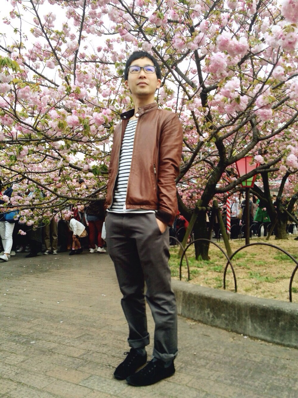今日は大阪 天満の造幣局桜の通り抜けにいってきました(^ ^) コーディネートはレザージャケットを中心に綺麗目なスタイルに今流行りのマリンボーダーを合わせたスタイルです(^ ^)
