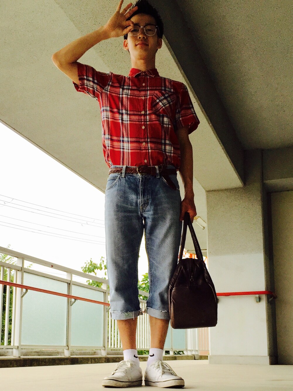 古着コーデ(^^) イメージはアメリカの小学生です笑 嫁さんには「それ、オシャレなん?」 と真顔で言われてしまいました。。 なので、完全に自己満足です。。。^^;