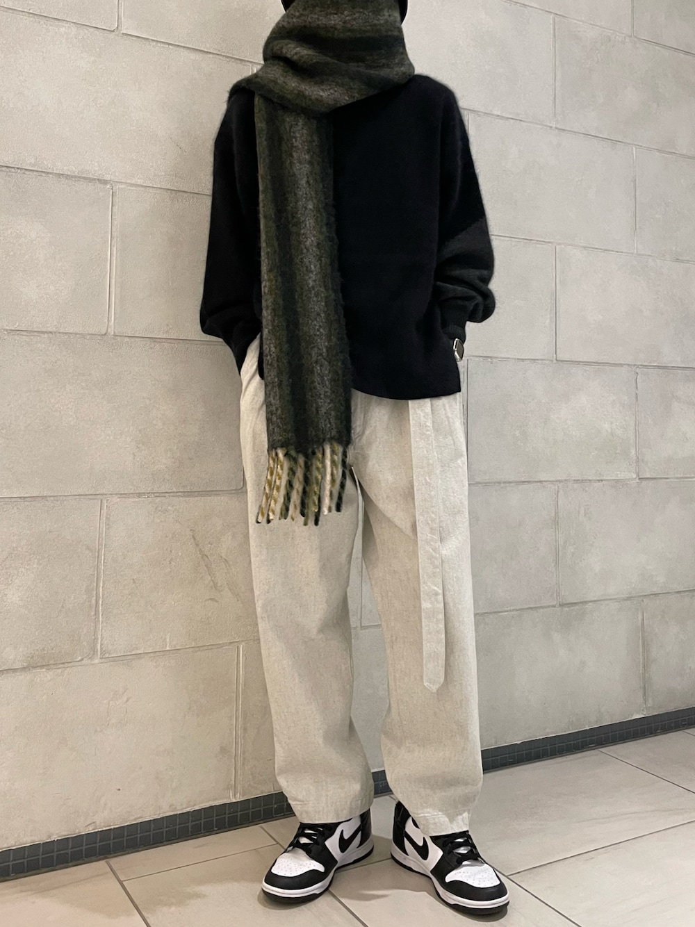 tのデニムパンツ「21-AW-017 ベルト3タックデニム」を使ったコーディネート