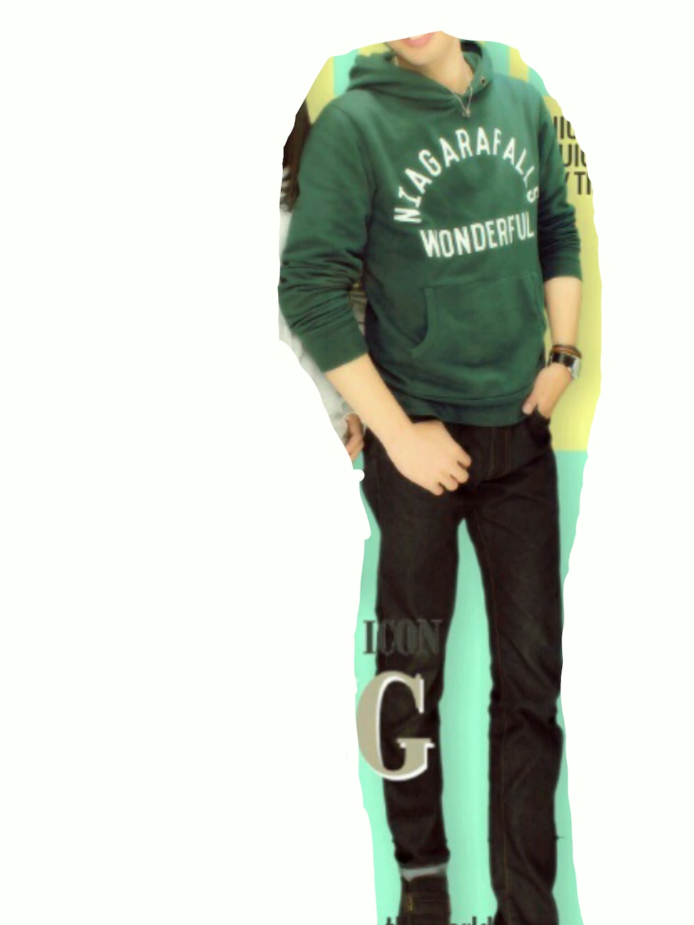 パーカー(ブランド不明) スキニージーンズ(ユニクロ) シューズ(Lee) 腕時計(EMPORIO ARMANI)