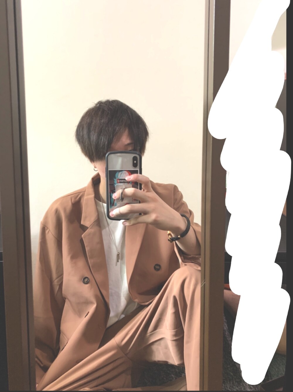TAKUのテーラードジャケット「Drape Over Double Tailored Jacket/ドレープオーバーダブルテーラード(セットアップ対応)」を使ったコーディネート