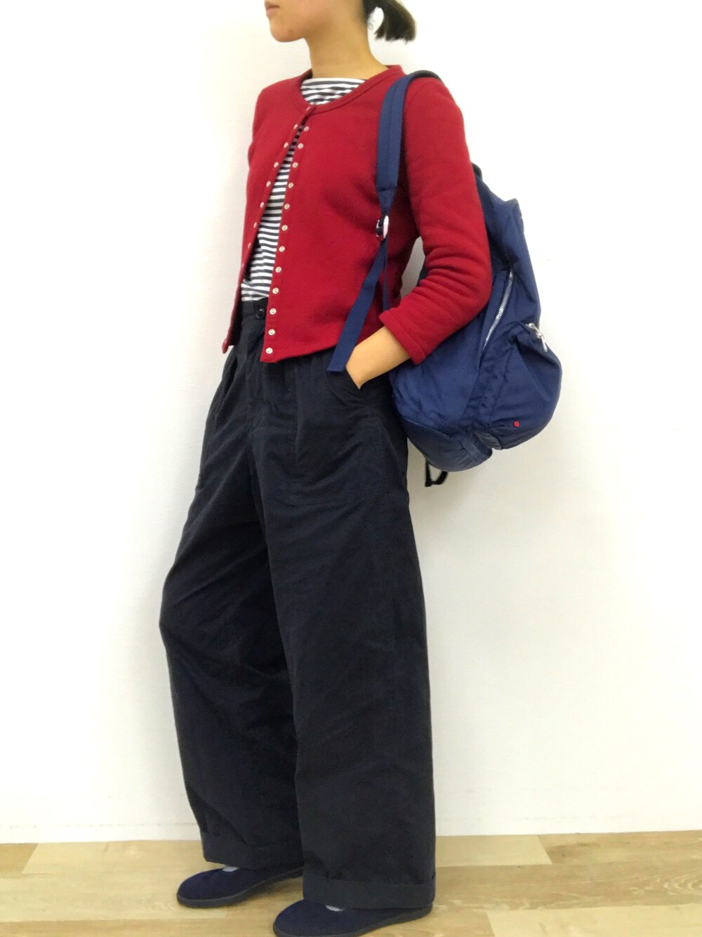 大好きなレッド✖️ネイビー✖️ボーダー コーデ! H/Standardのファティーグパンツのシルエットがツボ。