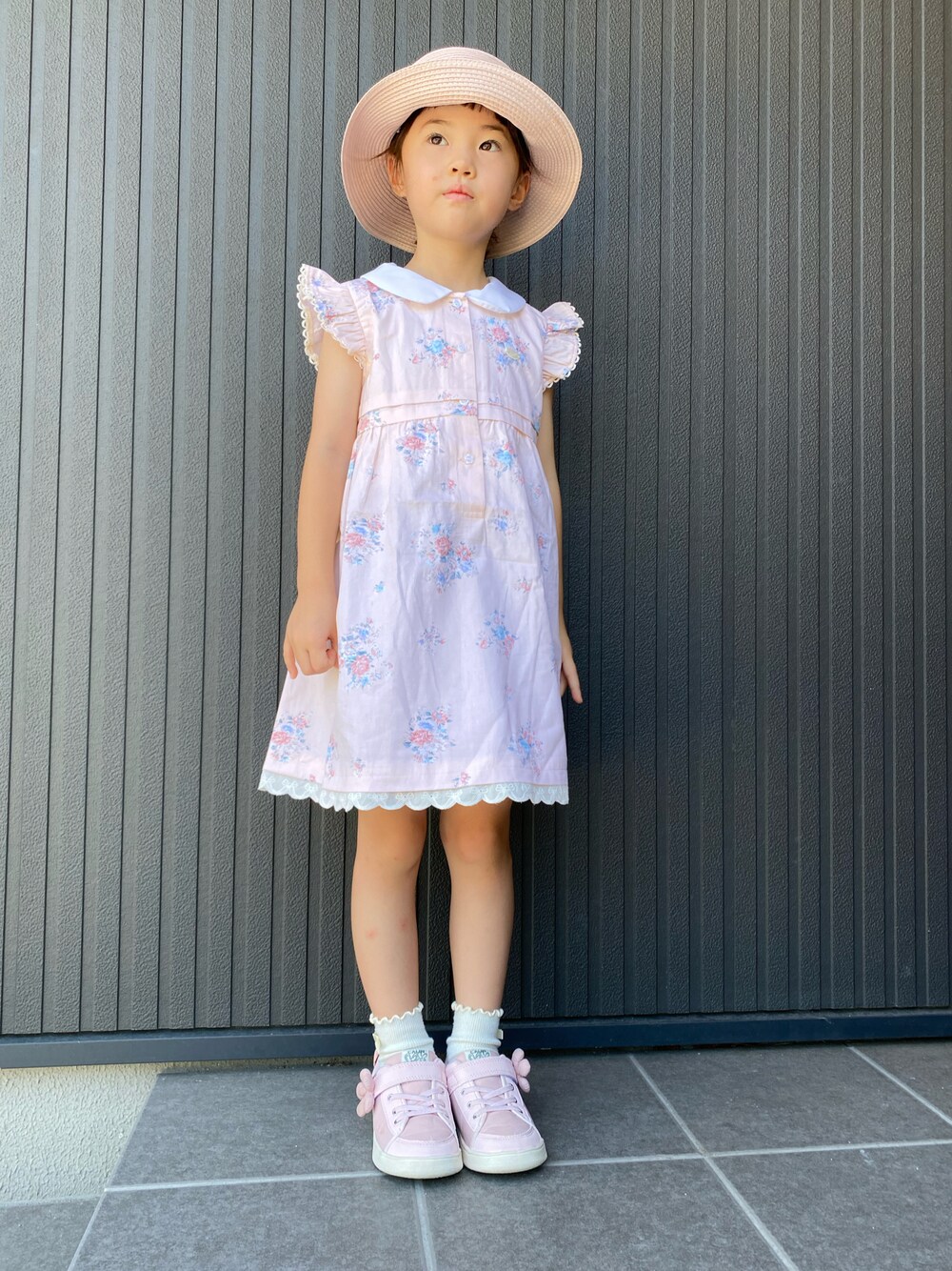 tamapicoのジャンパースカート「花柄ウエストタックジャンパースカート(80~130cm)」を使ったコーディネート