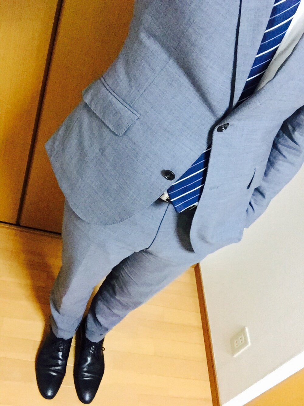 たまには平日の服装も載せてみます笑 社会人1年生なので、平日はスーツです。 イージーオーダーで作ったスーツなので、自分の体にかなりフィットしてます。 パンツの裾もかなり絞ってあって、細身な感じにしてあります。 いずれはフルオーダーのスーツも欲しいな〜