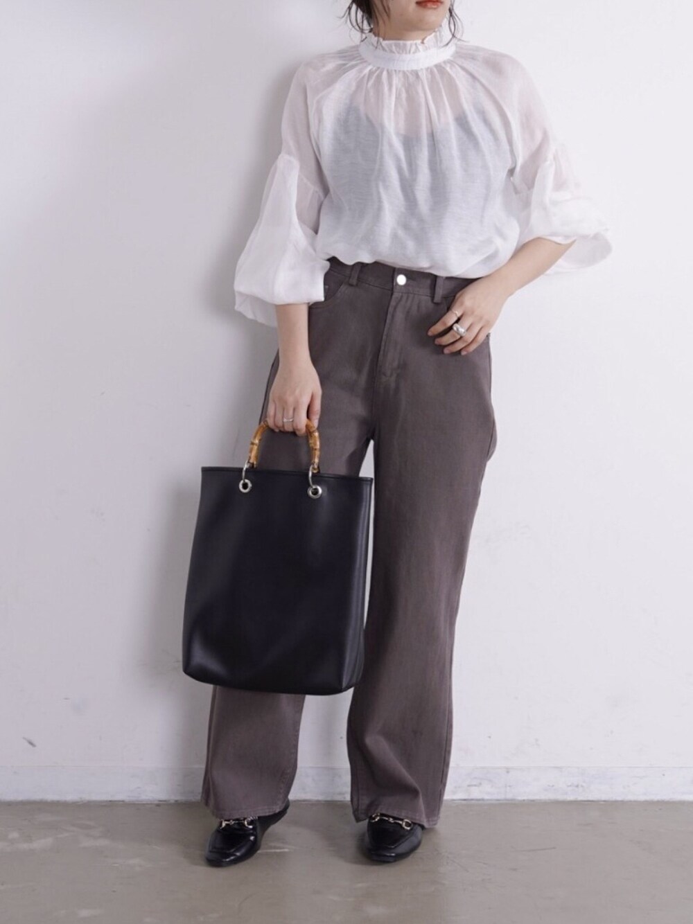 tamaruのシャツ/ブラウス「AUNT MARIE'S シアーハイネックボリュームブラウス」を使ったコーディネート