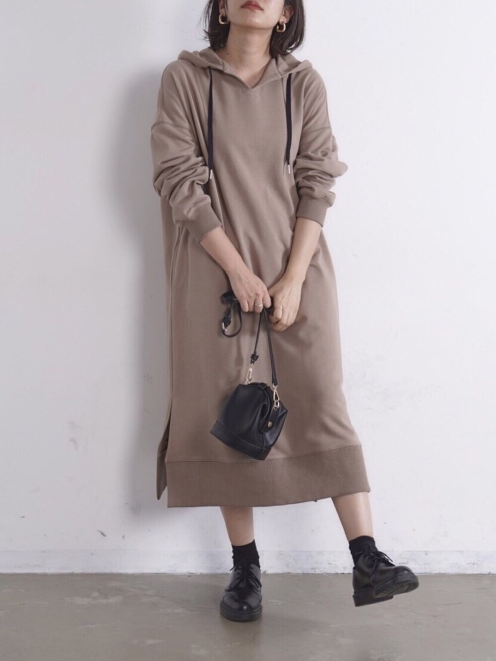 みてくださりありがとうございます☺︎ 今月オープンのブランド Happy john のパーカーワンピを着てみました🥺 パーカーはベージュだけど 紐が黒いのが可愛い💕 そこに合わせて靴と鞄も黒にし 統一感を意識してみました☺️ パーカーワンピで特有の首元のもたつき感も無くてスッキリ着られるのがお気に入りポイントです◎ いいね、お気に入り、フォロー嬉しいです😊
