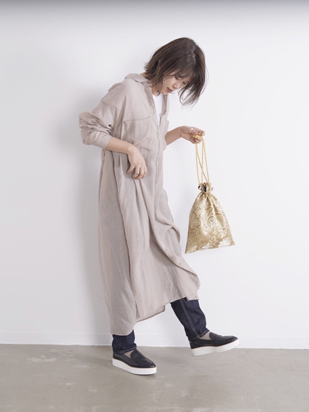見てくださりありがとうございます☺︎ シアーシャツワンピに 巾着チャイナバック🐼🇨🇳 のトレンド詰め込みコーデ🥰 巾着バック、コーデのワンポイントになるからいいよね〜😆 いいね、お気に入り、フォロー嬉しいです!