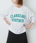 カレッジロゴスウェット 155cm / FREEサイズ 白地に緑の文字なところに一目惚れ🥺 スウェットってカジュアルなイメージが強めだけど、 ややゆとりのあるサイズ感や 肩から腕にかけて緩やかなラグランスリーブになっていたり 大人の方が着やすいデザインになってます◎