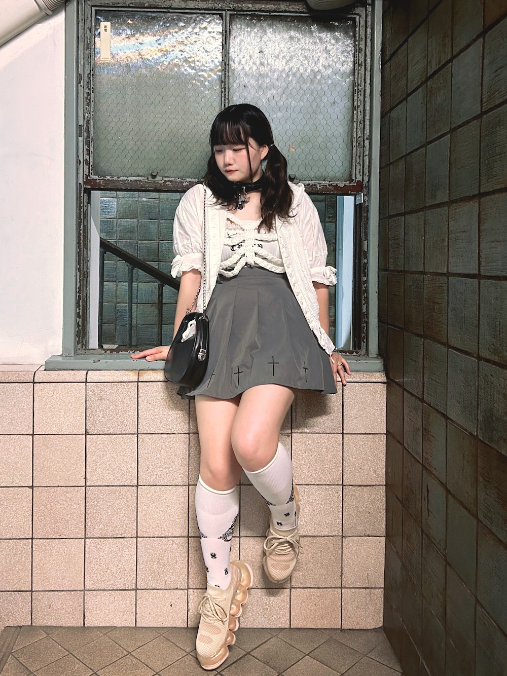 ブラウスを脱いでも可愛い様なコーデにしました🦴