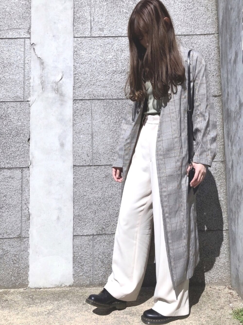 Tomoyoのその他アウター「グレンチェックベルテッドコート」を使ったコーディネート