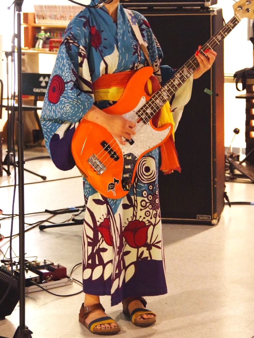 お久しぶりです。 先日軽音楽同好会のサマーライブでした。 トリ飾りました。ベボベのコピバン。 バンドメンバーで浴衣と甚平着たのです。 オレンジベースが映えますな🍊