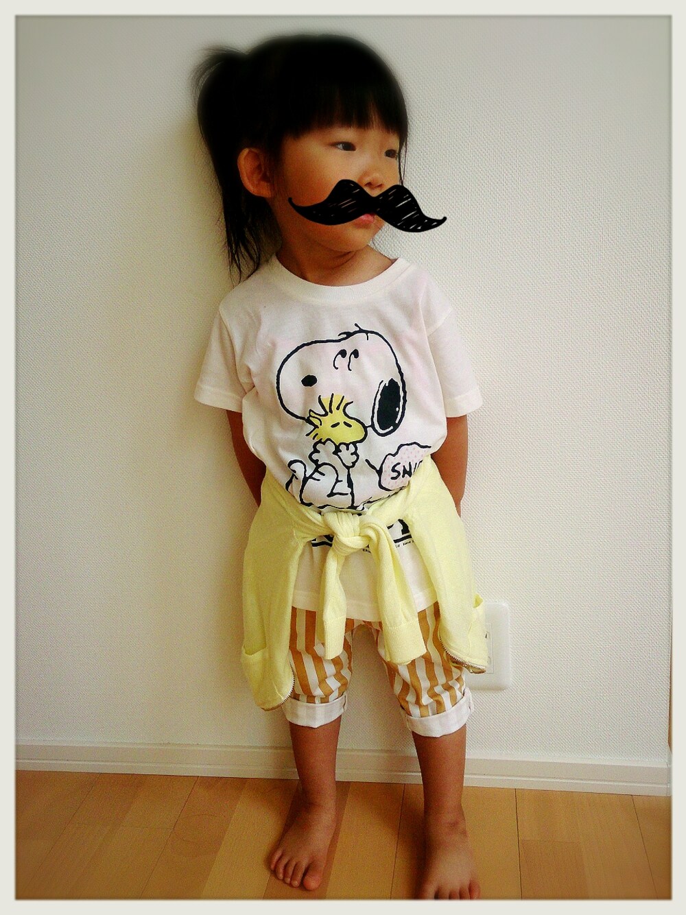 お姉ちゃんは幼稚園に行ったので妹さんだけで! お姉ちゃん帰ってきたら二人で着画がの写真に差し替えたいけど、最近はこだわりが強くてママコーデそのまま着てもらえない(+_+)