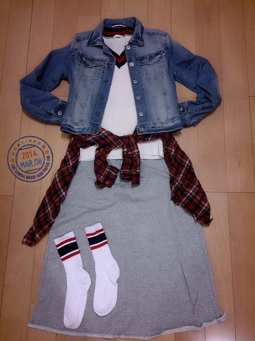 靴下とシャツ以外は全てGU(笑) 近くにお店が出来たので助かります! シャツDouDou 靴下雑貨屋さん 靴を入れると一万円越えてしまうので写真には入れてませんが履くならコンバース♪かな。