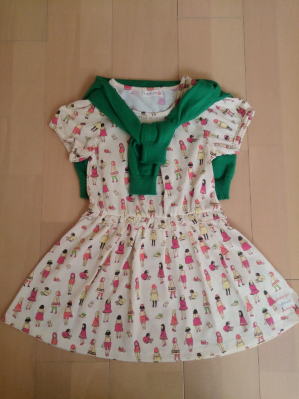 女の子のプリント柄が可愛いすぎるーと母が一目惚れ(笑) 姉妹お揃いで買ってしまった…。 妹はピンクベースのワンピですが合わせるカーディガンがなかった(--;) カーディガンSeraph