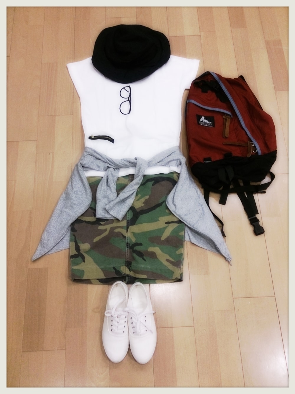 インドア派なので、妄想アウトドアコーデ(笑) ハット grace パーカー UNIQLO シューズGU リュック 旦那さんのGREGORY