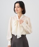 〈ジャケット〉 ウールですがサラッとした着心地で、秋冬通して使っていただけます。 ウエストのラインがしっかりとくびれているので、女性らしいラインでお召しいただけます。 腕周りもゆとりがあり薄手のニットと合わせることもできます。 〈ブラウス〉 透け感のある軽い印象のブラウス。 ホワイトのキャミソールと合わせて着ています。 袖にボリュームがあり、腕周り全体が程よく透けて細く見えた印象です。 ボリューム感のあるリボンがアクセントになりデニム合わせなどでも可愛く着られます。 様々な着こなしができるので、普段もお仕事もお使いいただけます。 〈パンツ〉 普段のパンツに比べウエストがゆったりめなので、これからニットをインすることもできます。 センターにラインが入っているので、足が長く見えます。 〈バッグ〉 ハンドルが二つついていて、2wayでお使いいただけます。 しっかり容量があるので、お仕事にもお使いいただけます。