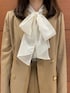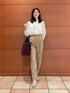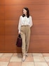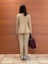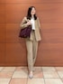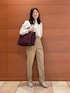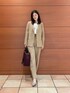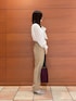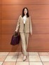 〈ジャケット〉 ウールですがサラッとした着心地で、秋冬通して使っていただけます。 ウエストのラインがしっかりとくびれているので、女性らしいラインでお召しいただけます。 腕周りもゆとりがあり薄手のニットと合わせることもできます。 〈ブラウス〉 透け感のある軽い印象のブラウス。 ホワイトのキャミソールと合わせて着ています。 袖にボリュームがあり、腕周り全体が程よく透けて細く見えた印象です。 ボリューム感のあるリボンがアクセントになりデニム合わせなどでも可愛く着られます。 様々な着こなしができるので、普段もお仕事もお使いいただけます。 〈パンツ〉 普段のパンツに比べウエストがゆったりめなので、これからニットをインすることもできます。 センターにラインが入っているので、足が長く見えます。 〈バッグ〉 ハンドルが二つついていて、2wayでお使いいただけます。 しっかり容量があるので、お仕事にもお使いいただけます。