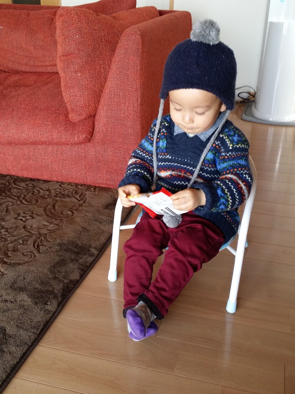 カウチンセーター:H&M ボトムス:しまむら デニムシャツ:Gap 帽子:ships