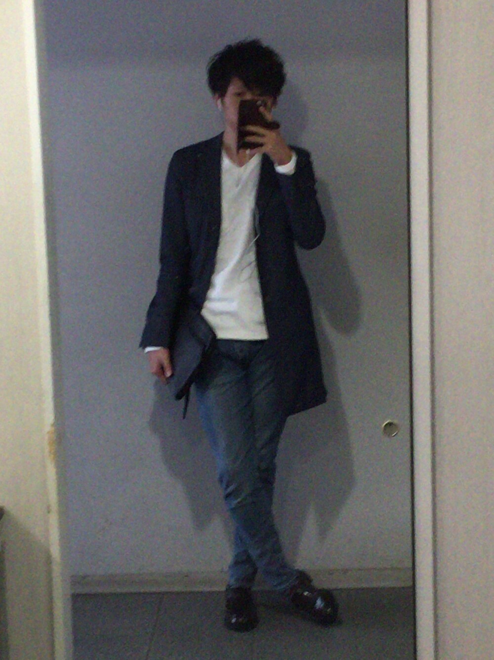 Tamon Fukuokaのチェスターコートを使ったコーディネート