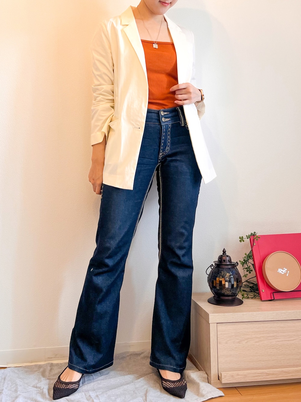 シルエットは全部キレイめアイテム、でも色と素材はカジュアルに キレイめコーデに遊びが入ると、仕事が出来る人に見える(気がする)