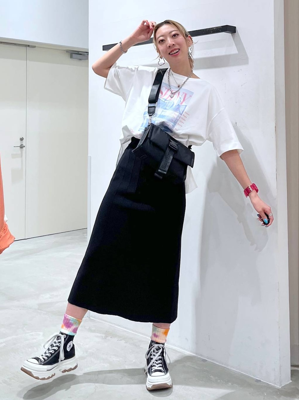 モノトーン夏コーデ☆ モノトーンコーデに フォトプリントとソックスでコーデにアクセントを!! -----*-----*-----*-----*----- お気に入りのアイテムやコーデが 右下の[ ♡ ]を押してお気に入り登録できるよ! あとから見返すのに便利っ♪ ☑︎Instagram:🦄 ☑︎WEAR:🐡 インスタでは私服やプライベート、イラストも更新☆ ぜひ、チェックしてみてね🤗