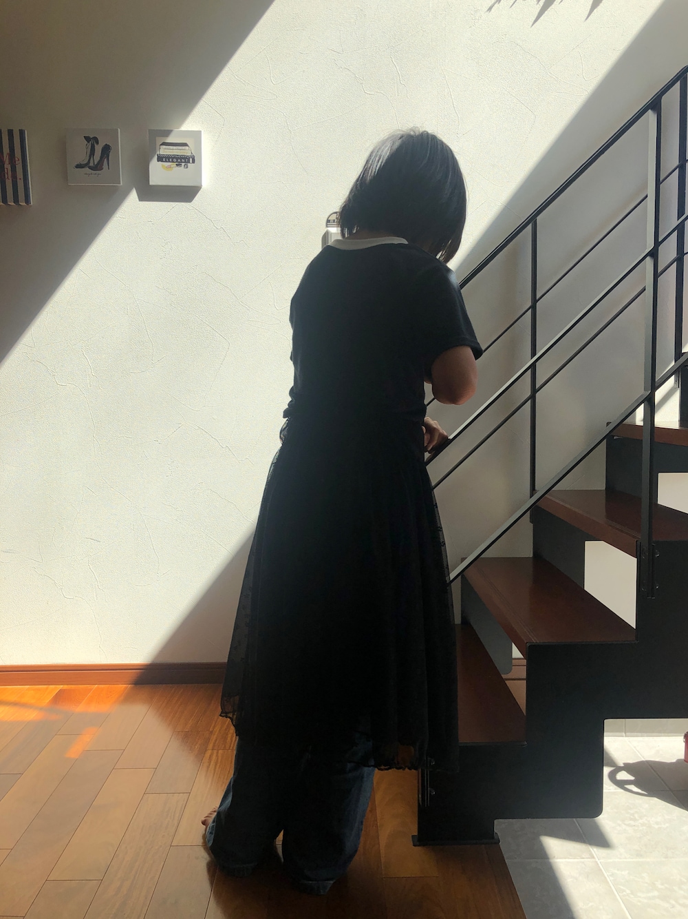 お母さんに、勧められて着てみた‼️ 意外と大人っぽいコーデになった。 結構可愛い❣️((o(。・ω・。)o))
