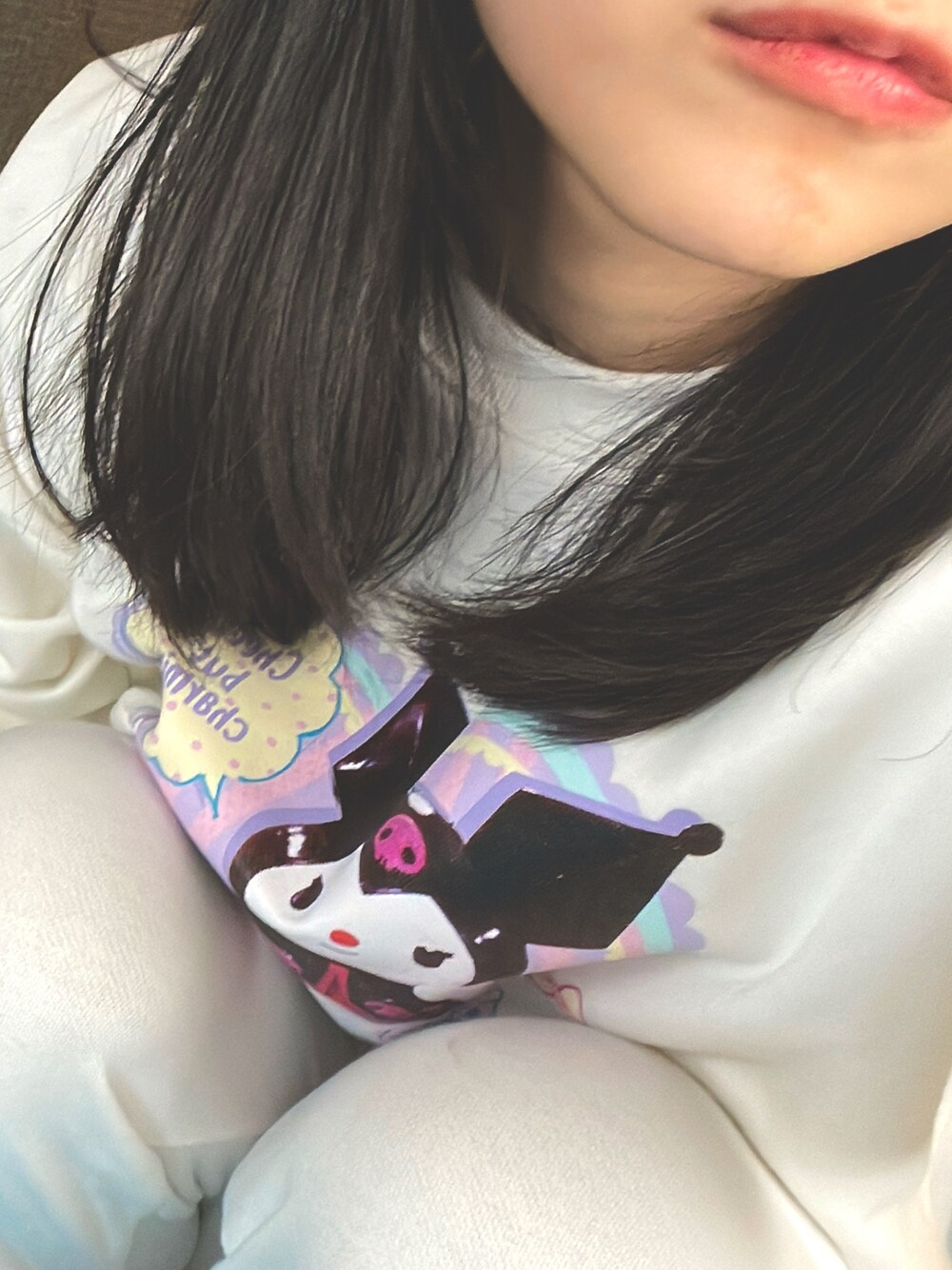 最近のルームウェア✌︎︎✌︎︎ ビレバンで買ったクロミちゃんスウェット💜🖤 白だから汚さないように気をつけなきゃ笑