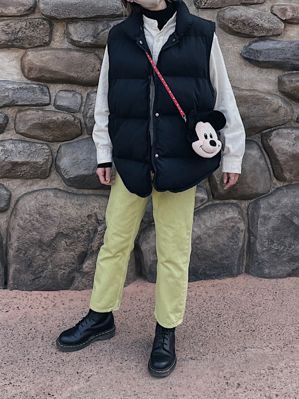 春の先取り🍃🌸 ピスタチオカラーの デニムがとってもお気に入り♡♡ . ダウンベストもめちゃくちゃ可愛い。